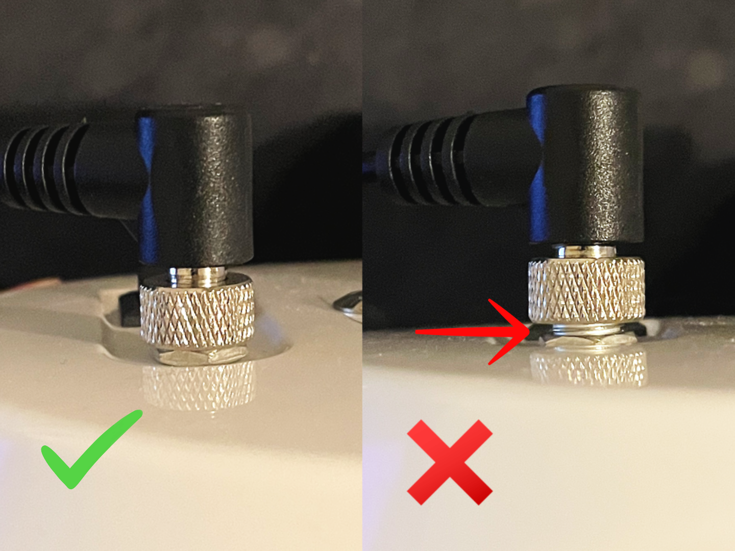 Vous pouvez voir qu'à gauche, le câble est mis visser et qu'à droite, il y a toujours un petit espace.